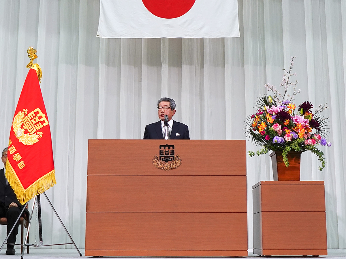 式典では、山本裕二校友会長が、新入生への励ましの言葉を述べました。